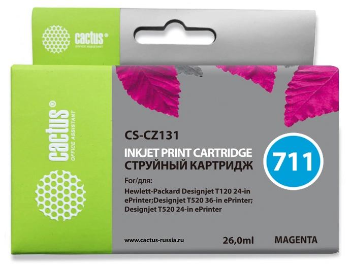 Картридж струйный Cactus CS-CZ131 №711 пурпурный (26мл) для HP DJ T120/T520/530 с чипом