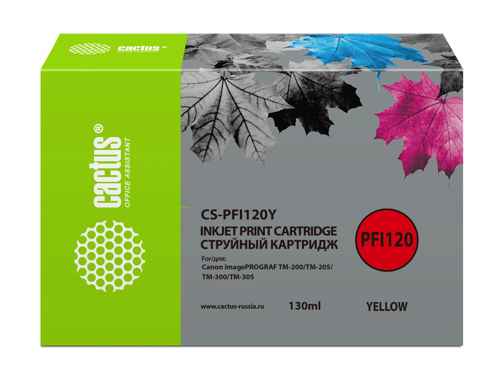 Картридж струйный Cactus CS-PFI120Y PFI-120 Y желт.пигм. (130мл) для Canon imagePROGRAF TM-200/TM-20