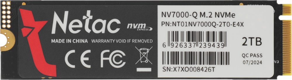 Накопитель SSD Netac PCIe 4.0 x4 2TB NT01NV7000Q-2T0-E4X NV7000Q M.2 2280