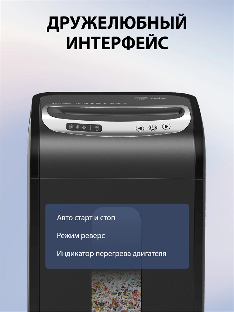 Шредер Cactus CS-SH-G6 черный/серебристый (секр.P-5) фрагменты 16лист. 30лтр. скрепки скобы пл.карты