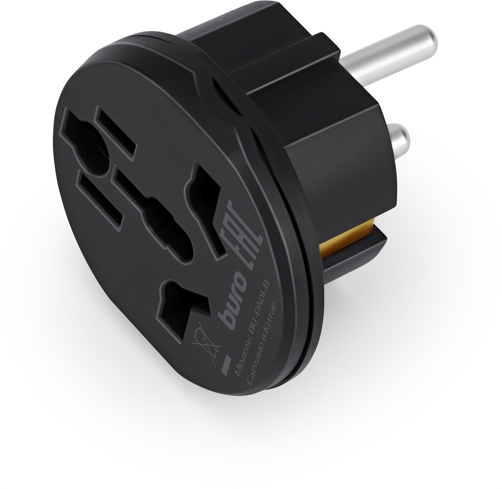 Адаптер-переходник Buro BU-PA01-B (1 розетка) черный (пакет ПЭ)