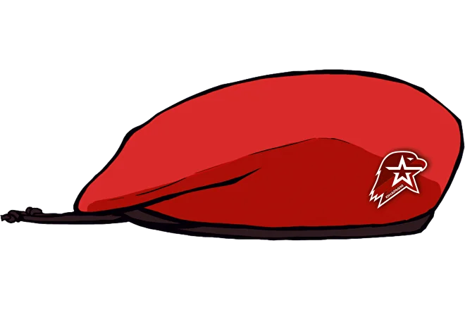 Берет из натурального фетра, имеет черную окантовку, утягивающий шнурок для регулирования прилегания берета. В данном берете имеются два вентиляционных отверстия, что позволяет голове «дышать».