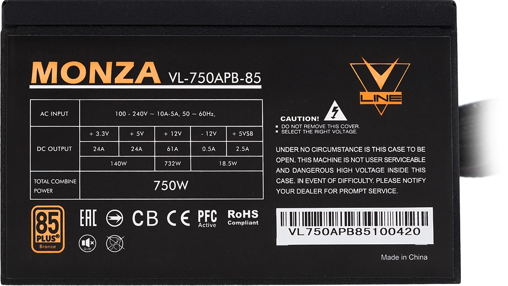 Блок питания Formula ATX 750W MONZA VL-750APB-85 80+ bronze (20+4pin) APFC 120mm fan 7xSATA RTL