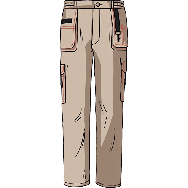 Множество функциональных карманов, с клапанами на липучке. В пояс по бокам вшита резинка, застежка брюк - молния и пуговица.
