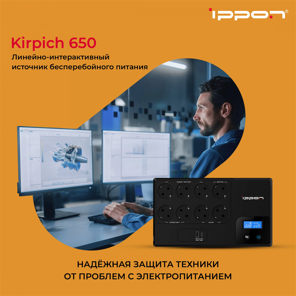Источник бесперебойного питания Ippon Kirpich 650 360Вт 650ВА черный