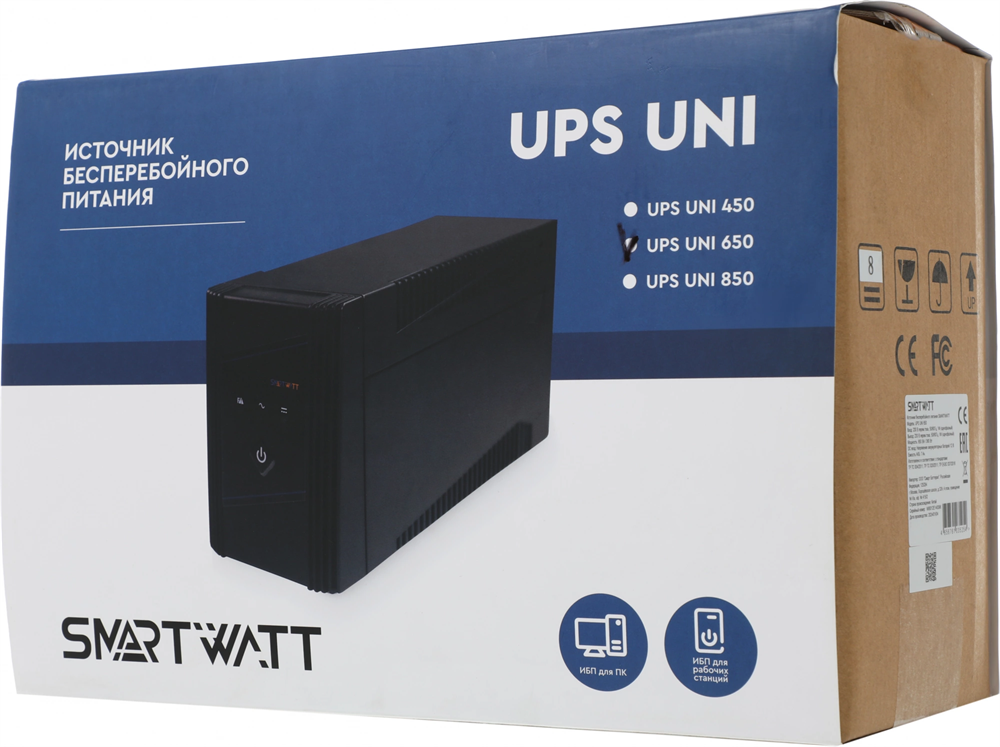 Источник бесперебойного питания Smartwatt Uni 360Вт 650ВА черный