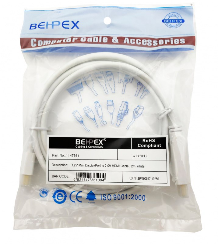 Кабель 1.2v miniDisplayPort (m) HDMI (m) 2м белый