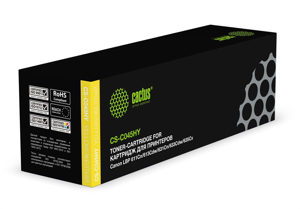 Картридж лазерный Cactus CS-C045HY 045 H Y желтый (2200стр.) для Canon LBP 611Cn/613Cdw/631Cn/633Cdw