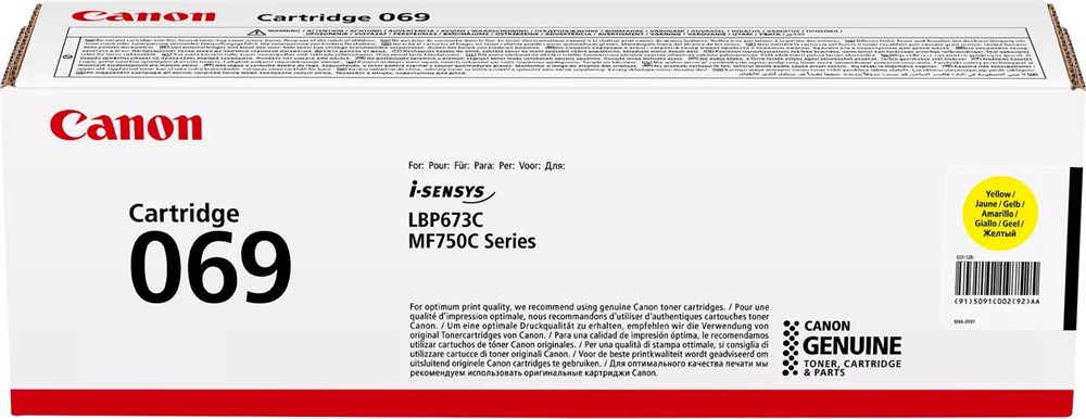 Картридж лазерный Canon 069Y 5091C002 желтый бар.в компл. (2000стр.) для Canon MF752Cdw/754Cdw, LBP6
