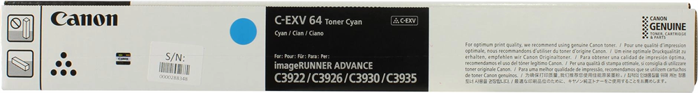 Картридж лазерный Canon C-EXV64C 5754C002 голубой (25500стр.) для Canon iR ADV C3922i/С3926i/С3930i/
