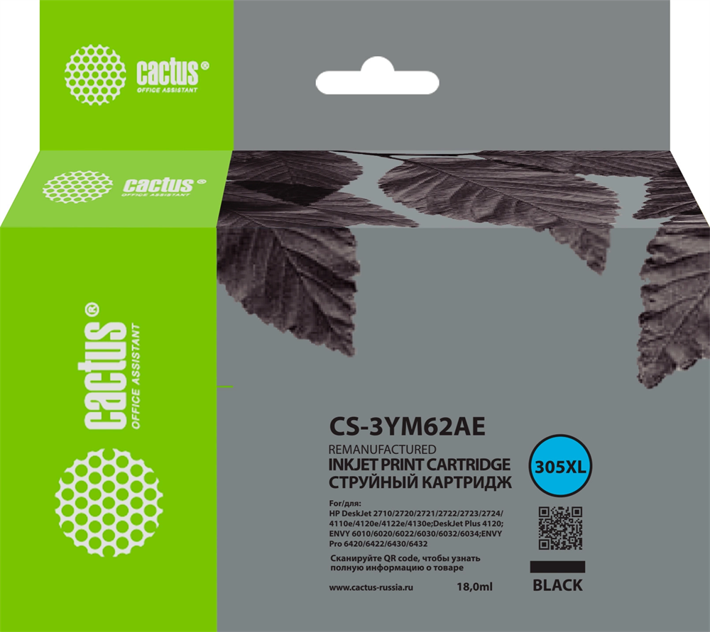 Картридж струйный Cactus CS-3YM62AE 305XL черный (18мл) для HP DeskJet 2320/2710/2720/4120 с чипом