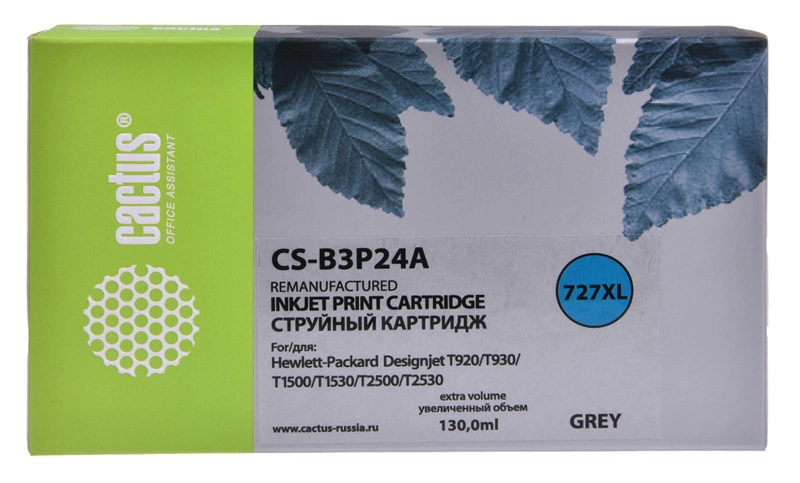 Картридж струйный Cactus CS-B3P24A №727 серый (130мл) для HP DJ T920/T1500/T2530 с чипом