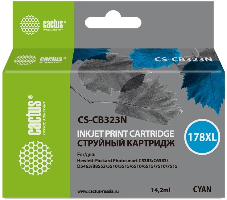 Картридж струйный Cactus CS-CB323N(CS-CB323) №178XL синий (14.6мл) для HP PS B8553/C5383/C6383/D5463