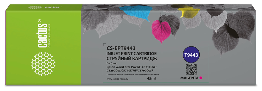 Картридж струйный Cactus CS-EPT9443 T9443 пурп.пигм. (45мл) для Epson WorkForce WF-C5290DW/WF-C5790D