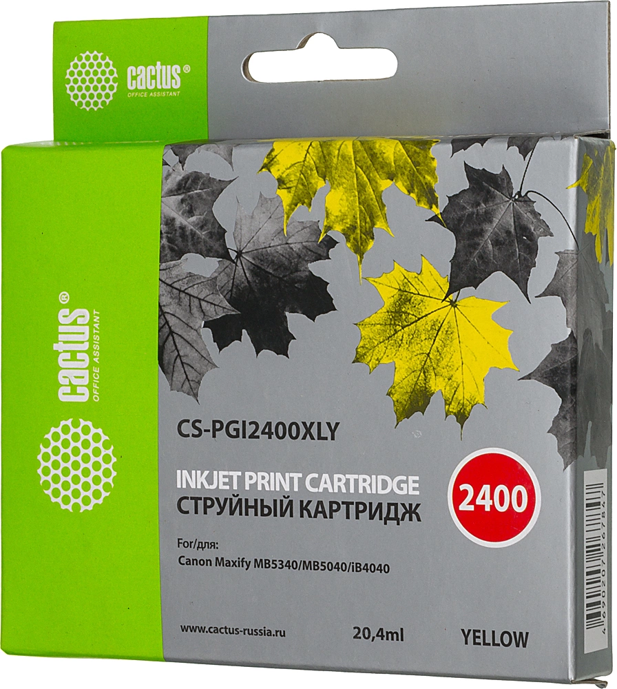 Картридж струйный Cactus CS-PGI2400XLY PGI-2400XLY желт.пигм. (20.4мл) для Canon MAXIFY iB4040/ МВ50