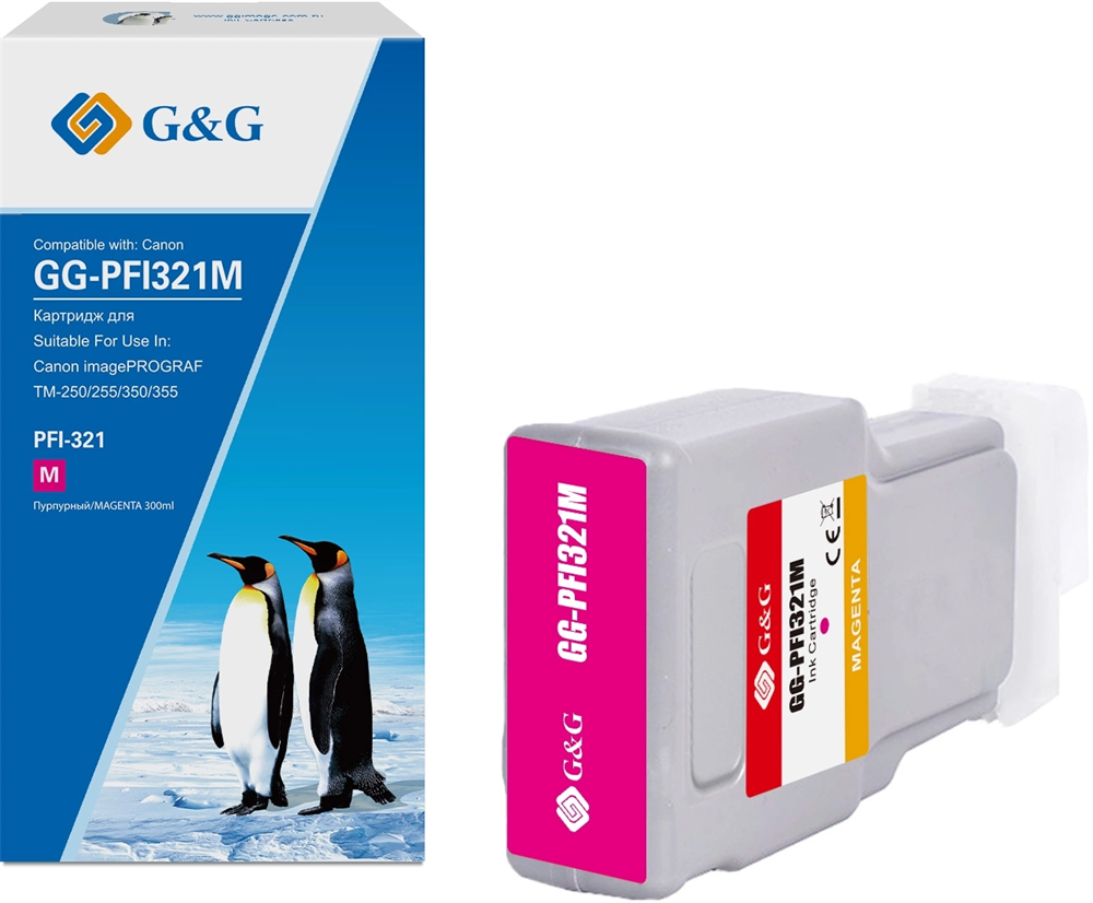 Картридж струйный G&G GG-PFI321M пурпурный (300мл) для Canon imagePROGRAF TM-250/255/350/355