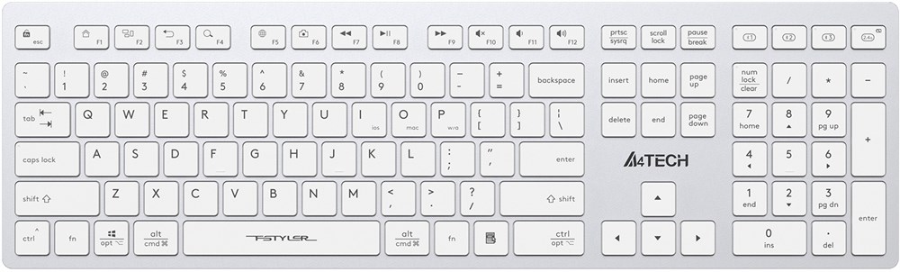 Клавиатура A4Tech FBX50C белый USB беспроводная BT/Radio slim Multimedia (FBX50C WHITE)
