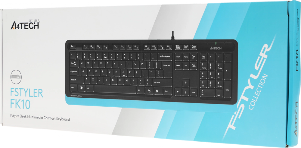 Клавиатура A4Tech FK10 черный/синий USB (FK10 BLUE) кабель 1.5м