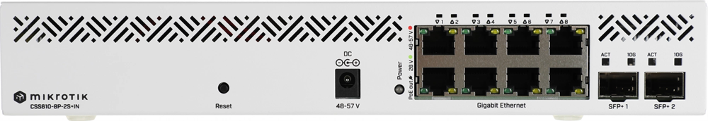Коммутатор MikroTik CSS610-8P-2S+IN 8x1Гбит/с 2SFP+ 8PoE 8PPoE 140W управляемый