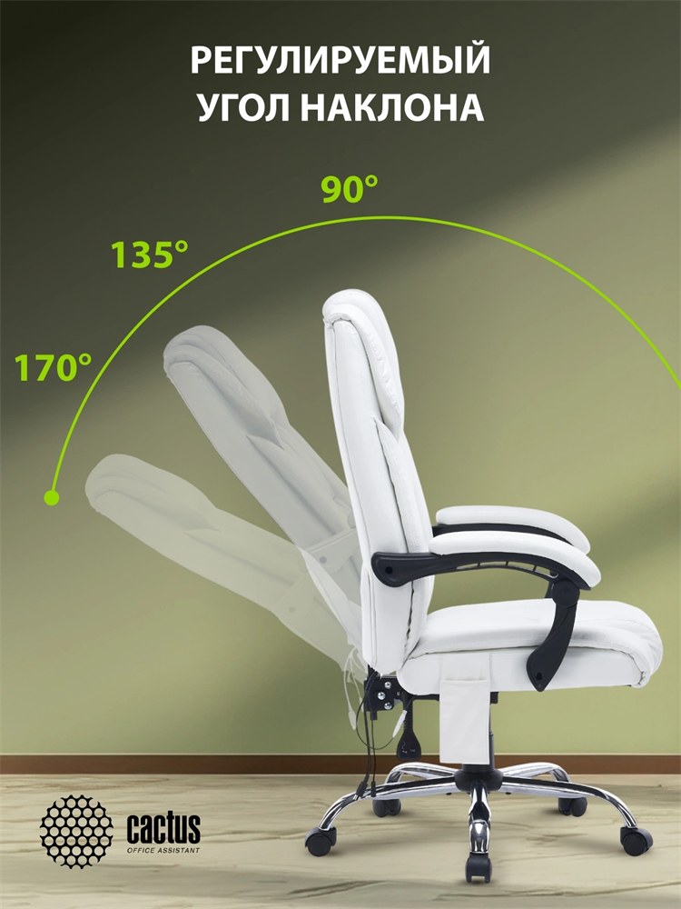 Кресло Cactus с вибромассажем CS-CHR-OC02M-WT белый экокожа крестов. сталь