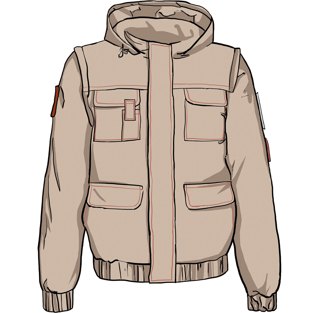 Формаустойчивость изделия, отстегивающиеся рукава, множество функциональных потайных карманов.
