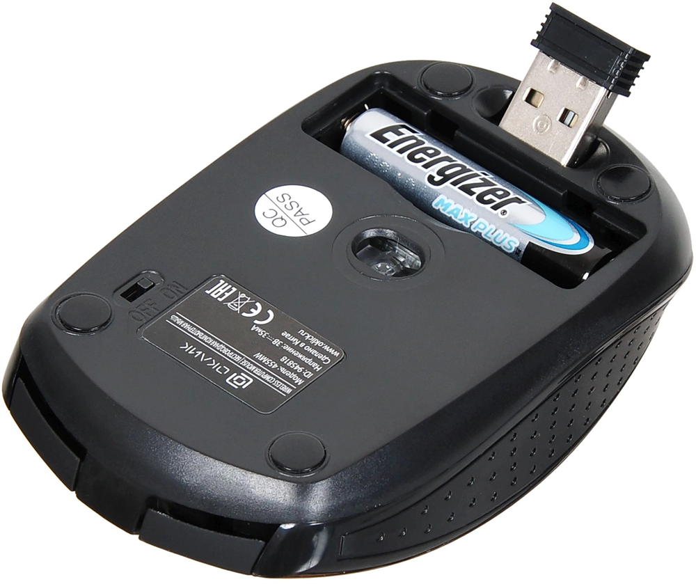 Мышь Оклик 455MW черный оптическая 1600dpi беспров. USB для ноутбука 6but (945818)