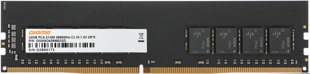 Память DDR4 32Gb 2666MHz Digma DGMAD42666032D RTL PC4-21300 CL19 DIMM 288-pin 1.2В dual rank Ret