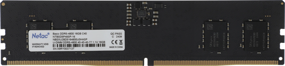 Память DDR5 16GB 4800MHz Netac NTBSD5P48SP-16 Basic RTL Gaming PC5-38400 CL40 DIMM 288-pin 1.1В Inte