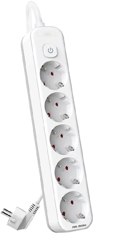 Сетевой фильтр Deli ET438 3м (5 розеток) белый (пакет ПЭ)