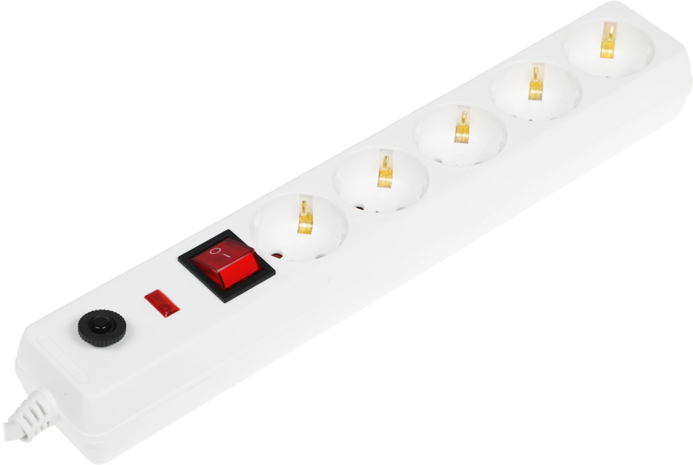 Сетевой фильтр IEK СФ-05К 1.5м (5 розеток) белый (коробка)
