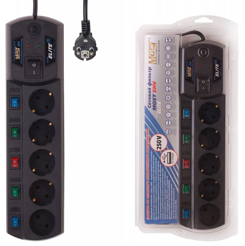Сетевой фильтр Most EHV 2м (5 розеток) черный (коробка)