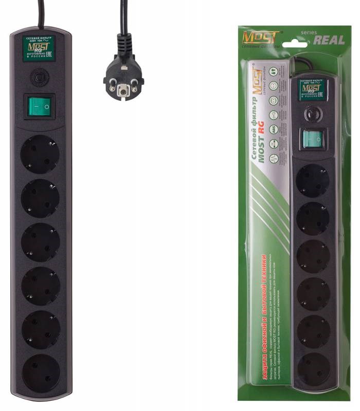 Сетевой фильтр Most RG 2м (6 розеток) черный (коробка)
