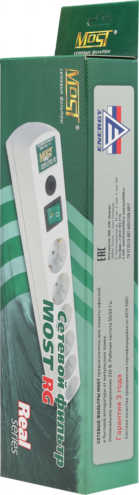 Сетевой фильтр Most RG 3м (6 розеток) черный (коробка)