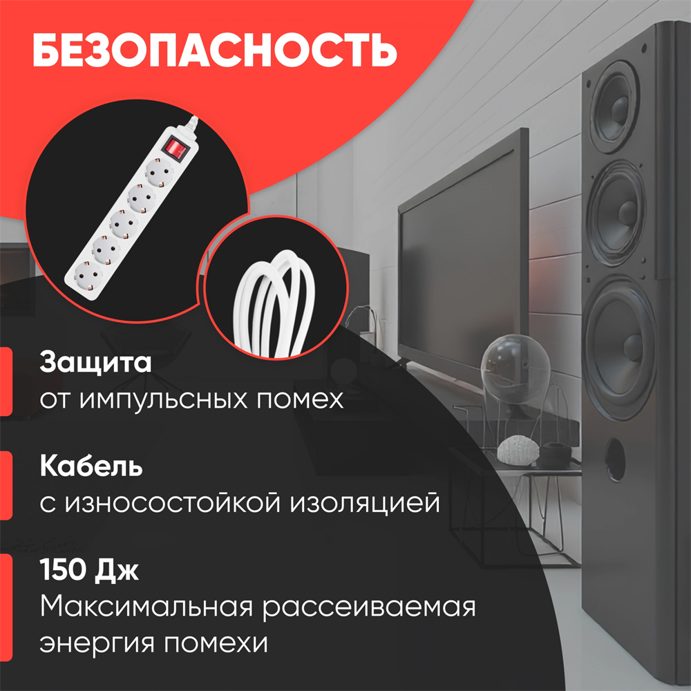 Сетевой фильтр PC Pet AP01006-5-G 5м (5 розеток) серый (пакет ПЭ)