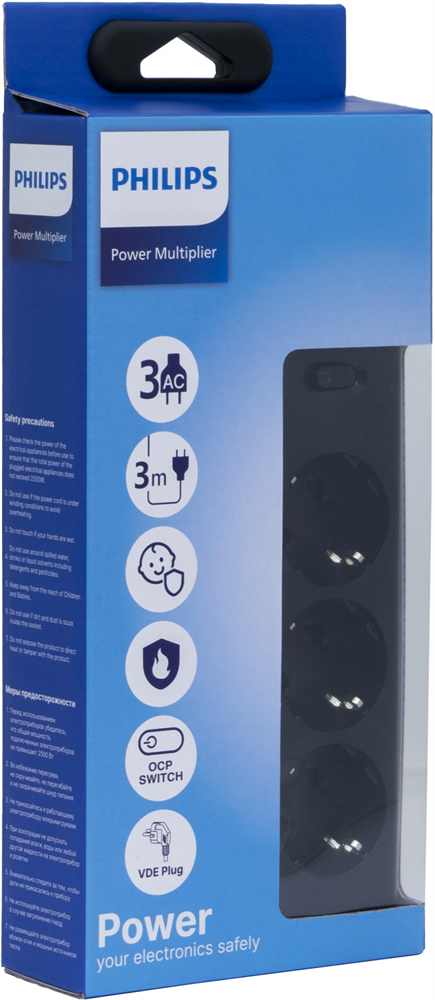 Сетевой фильтр Philips CHP2135BB/51 3м (3 розетки) черный (коробка)