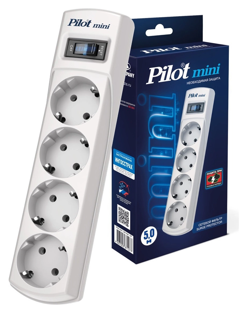Сетевой фильтр Pilot mini 5м (4 розетки) белый (коробка)