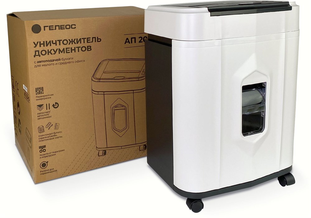 Шредер Heleos АП20-5 белый/черный с автоподачей (секр.P-5) фрагменты 131лист. 20лтр. скрепки скобы п