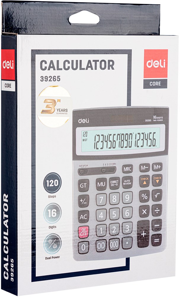 Калькулятор бухгалтерский Deli E39265 серый 16-разр.