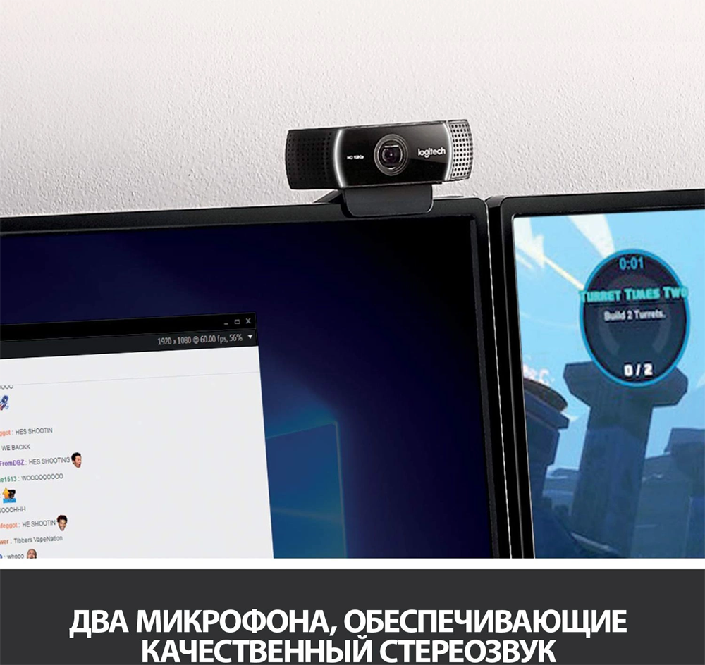Камера Web Logitech Pro Stream C922 черный 3Mpix (1920x1080) USB2.0 с микрофоном (960-001089)