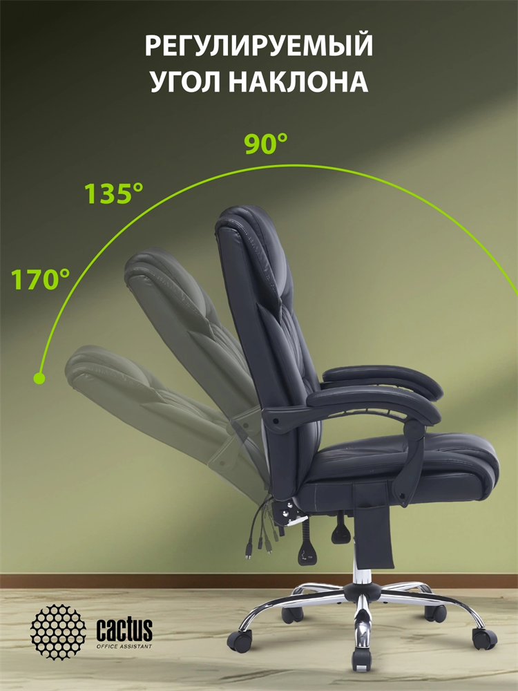 Кресло Cactus CS-CHR-OC02M-BK с вибромассажем черный экокожа крестов. сталь