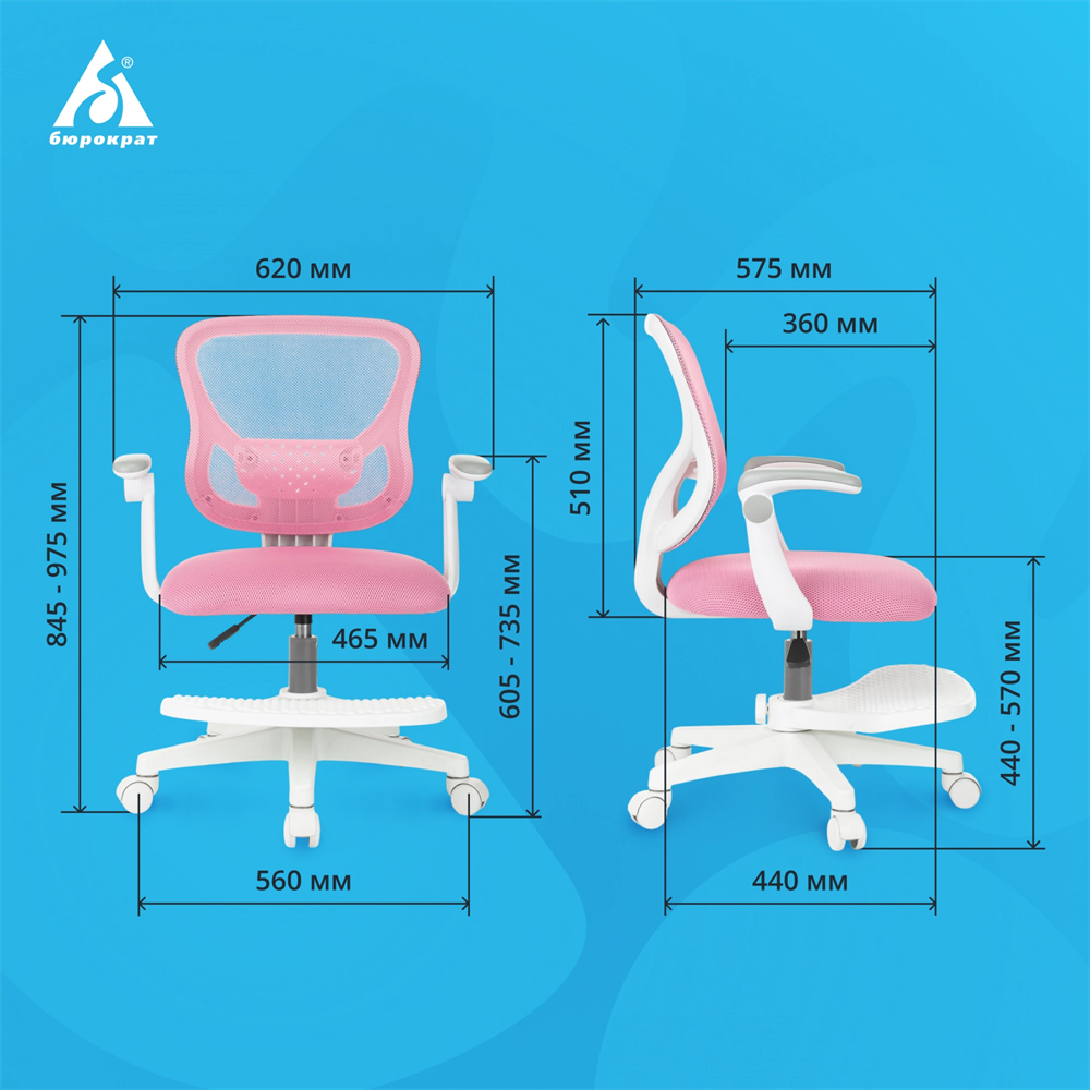 Кресло детское Бюрократ Burokids 3 розовый сетка/ткань крестов. пластик подст.для ног пластик белый