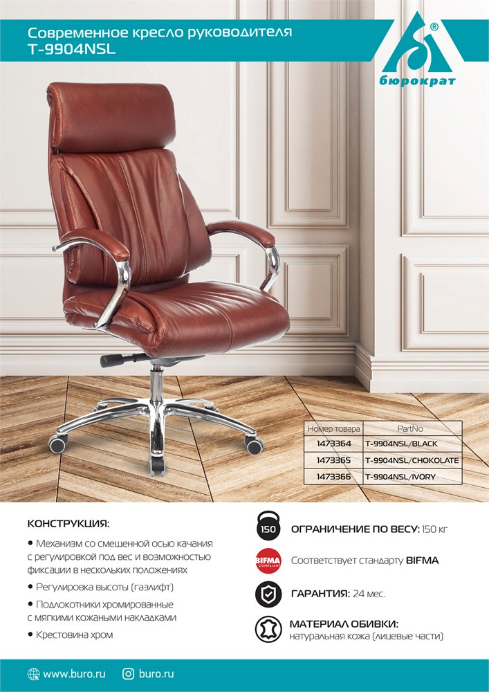 Кресло руководителя Бюрократ T-9904NSL черный кожа крестов. металл хром