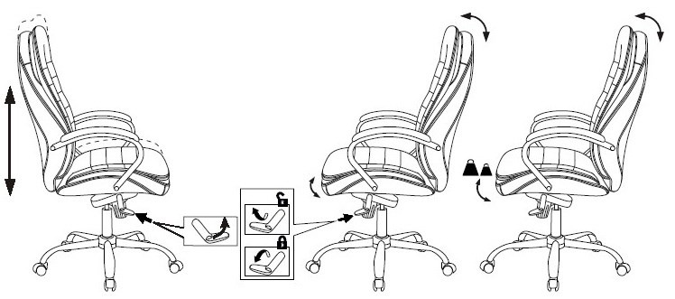 Особенностифункция "антишок" - плавно возвращает спинку после снятия блокировки качания