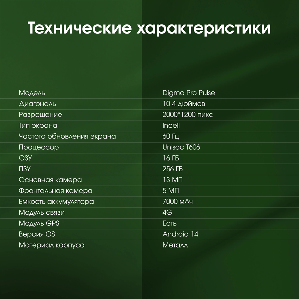 Планшет Digma Pro Pulse T616 (2.0) 8C RAM8Gb ROM256Gb 10.4" In-Cell 2000x1200 4G Android 14 темно-зе
