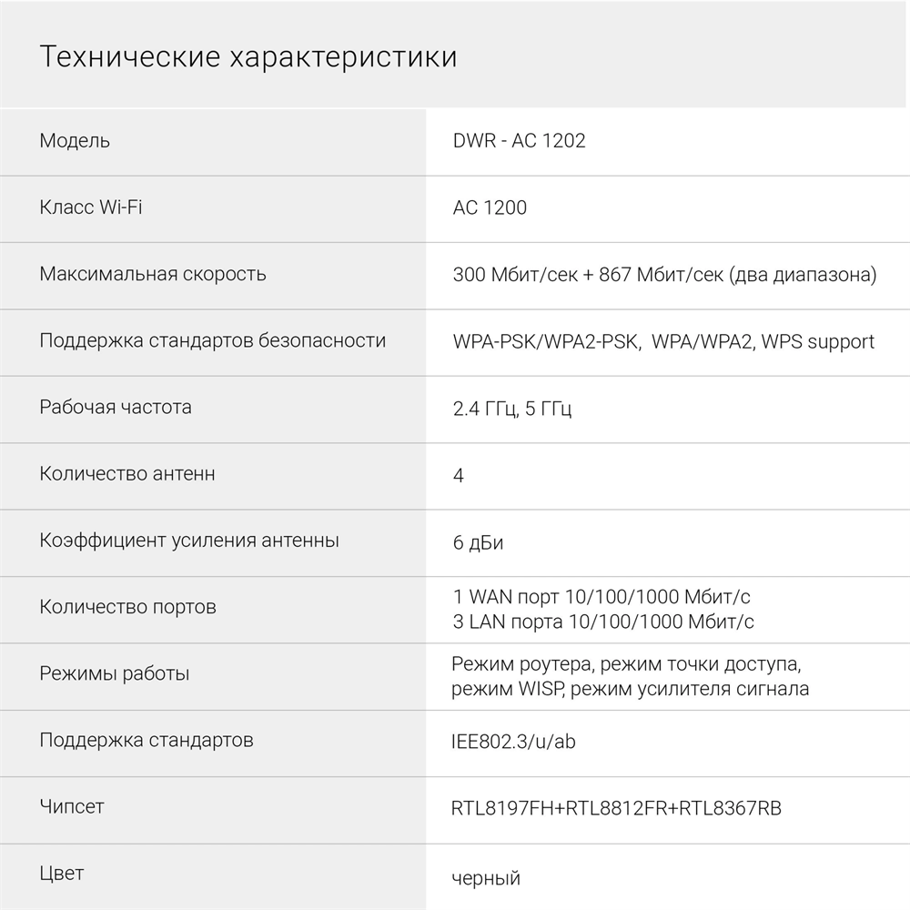 Роутер беспроводной Digma DWR-AC1202 AC1200 10/100/1000BASE-TX черный