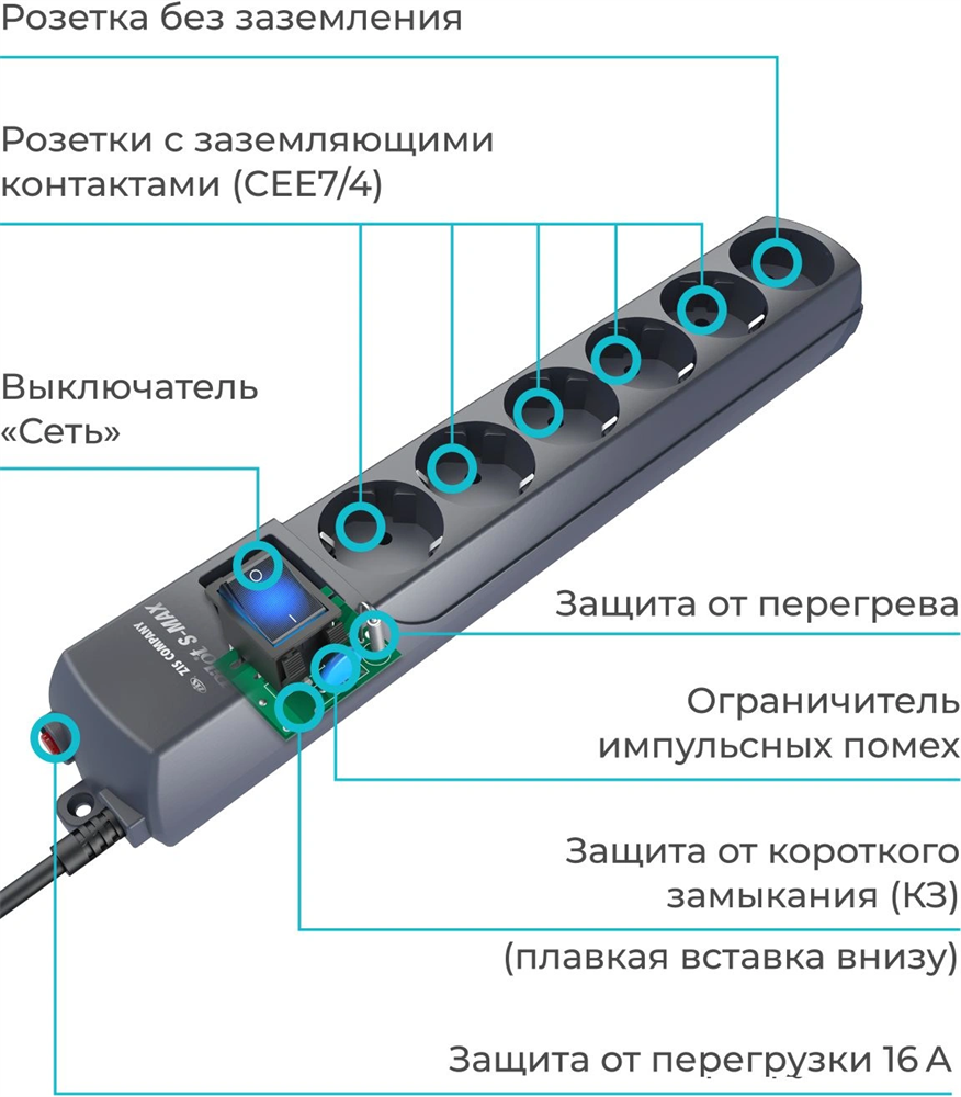 Сетевой фильтр Pilot S-MAX 5м (6 розеток) серый (коробка)