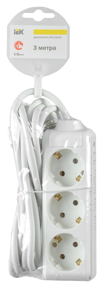 Сетевой удлинитель IEK У03 3м (3 розетки) белый (пакет ПЭ)