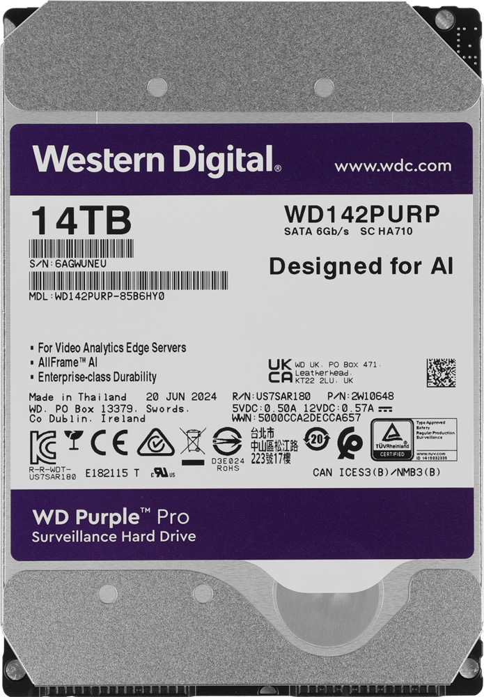 Жесткий диск WD SATA-III 14TB WD142PURP Surveillance Purple Pro (7200rpm) 512Mb 3.5"